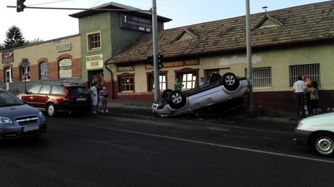 Az eredmény ritka látványosra sikerült. Az ezüst Subaru Forester ugyanis úgy találta telibe az előtte haladó autót, hogy valami varázslatos módon a tetejére borulva landolt. Talán egy hátast dobott a meglepetéstől, de a járókelők és a forgalom többi részvevője biztosan: ők leesett állal bámultak.