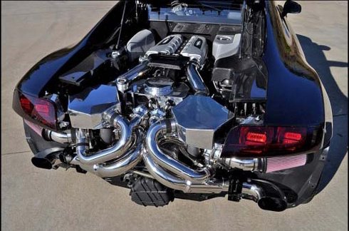 Az Audi R8 esetében nem kellett nulláról indulniuk, hiszen édestestvérét, a Lamborghini Gallardót már sikerült felhúzniuk 1900 lóerőre, bár a rekordkísérletre épített gép csúnya bukfenccel fejezte be karrierjét. Az R8-as ezután inkább csak ujjgyakorlat lehetett az amerikai cégnek, de ettől függetlenül meg lehet nézni az eredményt. Ahogy szokták, hátsó kötény nélkül mutatják meg a fénylő csövekből összerakott műremeket, amely láttán hihetőnek tűnnek a hihetetlen számok.