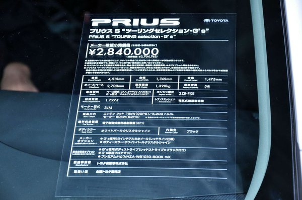 Úgy hívják: GS, pontosabban „Prius S Touring Selection, GS's . Ültetett futómű, küszöbön színes csík, bőrbevont kormány, módosított első és hátsó lámpák. És ami a legfurább: alkarnyi (vagy felkarnyi?) sportkipufogó, láthatóan, a hátsó ütköző aljánál.