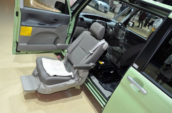A rokkantak védőangyala persze nem is a Toyota, hanem a Daihatsu, a Tantóval. Nézzék csak, micsoda kétfelé nyíló, óriási szekrényajtón át, kifordítható üléssel várja a használókat!