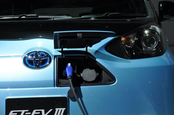 A feltöltött betöltőnyílás által hátrahagyott lyukat szemlélve egyébként újabb megfigyelésre tettünk szert: az FT-EX feltehetőleg az Aston-Martin-féle, Toyota iQ-alapú kisautóról egyenesen átvette a maszkját. Nézzék, hogy biggyeszt.
