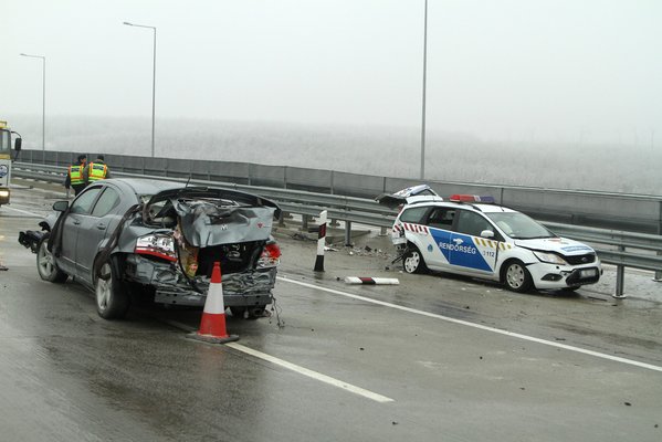 A Gödöllő irányába vezető oldalon, a 6-os kilométer közelében egy másik kocsi miatt állt meg a rendőrautó, amelybe aztán belehajtott egy másik gépjármű. A helyszínelés miatt a baleset által érintett oldalt lezárták.
