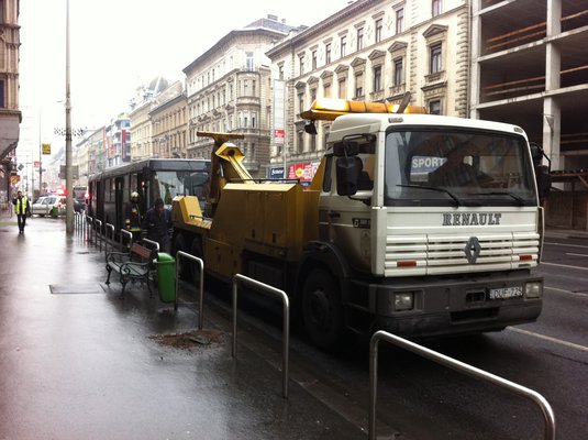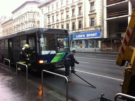 A kivonuló BKV-sok igyekeztek a lehető leggyorsabban eltüntetni a kigyulladt buszt, a vontató jármű is hamar kiérkezett. Villámgyorsan lecsukták a szemmel láthatóan felfeszített gépháztetőt, és a műszaki mentő járművet is a lehető legszorosabban a busz hátuljához állították - minden bizonnyal azért, hogy minél kevesebben láthassák, mi is történt.