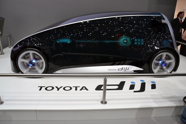 Volt itt természetesen jövőbe mutató, guruló LCD-doboz is, de a diji – tanulmány inkább egy technológiai demó volt, mintsem konkrét jövőterv (Tokióban már láthattuk). Az egész autó lényegében egy képernyő, amelyen bármi lejátszható, jelen esetben egy Facebook-szerű alkalmazás üdvözölte a közelgő sofőrt, majd mindenféle hullámok és lángnyelvek táncoltak az autó oldalán. Képzeljék csak el, ha az elképzelt Mr.Smith helyett mondjuk Monique Cuvée közeledne a kocsihoz és az – felismerve őt – gyorsan végigpörgetné Facebook-falának portfólióját. Remek dolog a csúcstechnika.