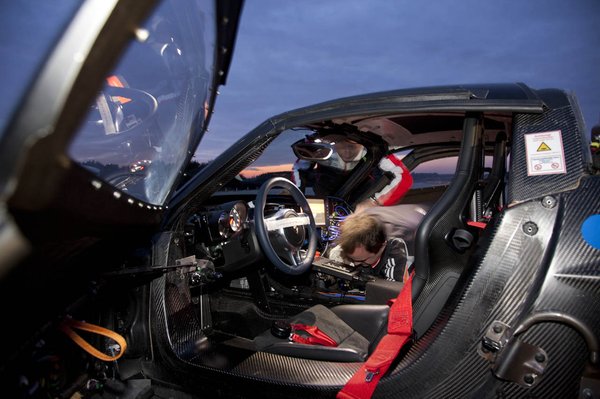 Így is kilátszik az autó oldalán a két nagyméretű hűtőradiátor, a kis V8-as turbómotor viszont eltűnik a hővédő lemezek és a kipufogórendszer alatt. A legfontosabb újdonság, a Williams-féle lendkerekes hibrid rendszer alkatrészeit szintén jól elbujtatták. Az viszont így is érezhető a képek láttán, hogy a hibrid sportkocsi, amelynek a hátsó kerekeit a bő 500 lóerős benzinmotor, az elsőket pedig a fékezéskor visszanyert energiával működtetett villanymotor hajtja, még egy hagyományos szupersportkocsihoz képest is kivételesen összetett szerkezet.