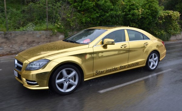 A legtöbb hasonló eseményen szokvány fekete limuzinok szállítják a szőnyeg végéig a sztárokat, bár előfordult már, hogy az autó is szerepet kapott egy-egy filmfesztiválon. Volt már, hogy Toyota Priusokkal érkeztek a hírességek, vagy Hummer H1-est használtak bevonulási járműnek. A Mercedes azonban új módot talált rá, hogy feltűnővé tegye az autóit: arany fényezésű autókkal szállítja a Cannes-i filmfesztivál vendégeit. Nem a szokványos arany-metál színt használták: az árnyalat olyan, mintha a Mercedeseket valóban aranyból öntötték volna.