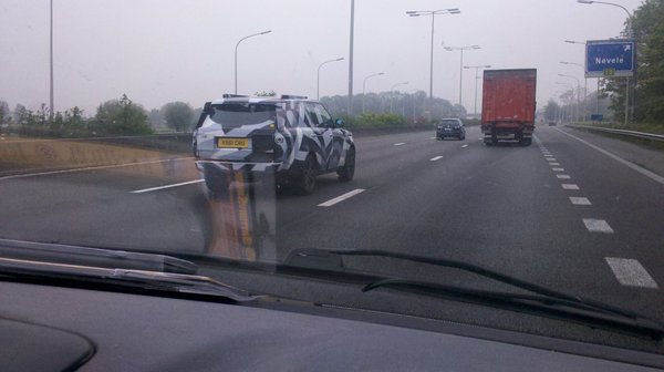 Így lehet, hogy három olvasónk is lefényképezte az autót, amelyet a Range Rover utódjának vélünk, méghozzá három nagyon eltérő helyszínen. Angliában, a Jaguar-Land Rover központhoz közel egy garázsfeljárón, Belgiumban az egyik autópályán, Németországban pedig egy parkolóházban bukkant fel a fekete-fehér prototípusokból egy-egy. A belga példány rendszámából az is kiderül, hogy február végén helyezték forgalomba, és 3 literes dízelmotor van benne.