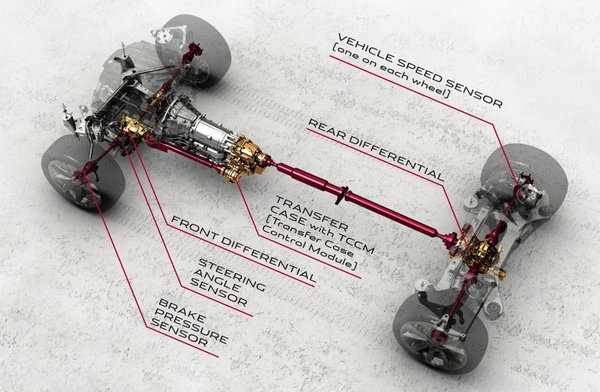 A másik újdonság az összkerék-hajtás, amely iránt egyre nagyobb kereslet mutatkozik a luxusautók piacán. A hagyományosan hátsókerék-hajtású modelleket forgalmazó BMW és Mercedes is egyre több összkerék-hajtású autót ad el mostanság, nem csoda, hogy a Jaguar is bemutatja saját 4x4-es modelljeit. Az új hajtásrendszer a gyáriak ígérete szerint jól tapadó felületen alig fog beleszólni az autó viselkedésébe – a nyomaték zöme ilyenkor a hátsó kerekeknek jut – de csúszós felületen akár a teljes vonóerő 50%-a is az első kerekeknek juthat. Így elsősorban esőben és havon válik sokkal biztonságosabbá a Jaguarok viselkedése. Az összkerék-hajtást egyelőre csak az új kompresszoros V6-os motorral párosítják, de nem kizárt, hogy később a többi motorhoz is elérhetővé teszik.