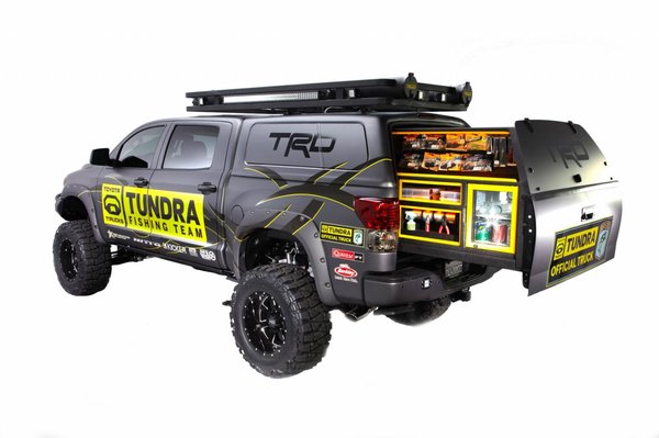A Toyota a SEMA Show-ra készülve felkért egy jól ismert profi sporthorgászt, Britt Myerst, hogy adjon tanácsokat egy, kifejezetten horgászathoz idomított jármű elkészítéséhez. Az eredmény egy meglepő off-road gép lett, amelyről inkább a sárdagasztás jut eszünkbe, mint a horgászat. A Tundra pick-up hatalmas, bütykös gumikat kapott, amelyek 20 hüvelykes felnikre kerültek, illetve egy 30 centis futómű-emelést. Nehéz elképzelni, milyen terep az, ahol nem megy el, különösen úgy, hogy 5,7 literes V8-as motorjára egy kompresszort is felszereltek. És ha mégis elakadna, még mindig kihúzhatja magát a beépített csörlővel.