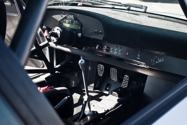 Nemcsak a műszaki tartalom és a hatalmas szélesítések utalnak arra, hogy komoly versenyautóval van dolgunk. A beltérben a bukócsövön kívül Recaro versenyülést és szénszálas borításokat találunk, a műszerek pedig alkalmasak a versenyadatok rögzítésére is.