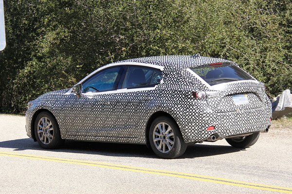 Az új ötajtós formája hasonlóan izgalmas, mint a Mazda 6-osé, ez a prototípus álcáján keresztül is jól látható, ahogy az is egyértelmű, hogy a típus méretben is felülmúlja majd az előző generációkat. A sportos forma ára valószínűleg itt is a korlátozott kilátás lesz – legalábbis az övvonal elég magasan fut – de ez eddig sem befolyásolta a formásabb modellek eladási sikereit. A Mazda a CX-5 és a 6-os után a 3-ast is szabványos, változtatható méretű padlólemezére építi, ugyanazoknak a fődaraboknak a használatával. Ennek ellenére legalább 100 kilogramm súlycsökkenésről hallani, amelyet részint a korszerűbb karosszéria, részint a könnyebb hajtásrendszer révén érnek el.
