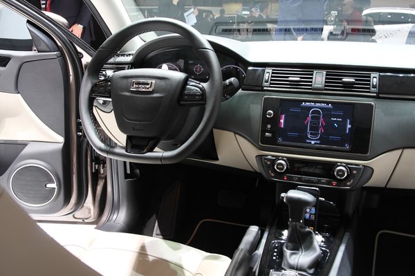Testközelből nézegetve a standot bizony vészjósló a profizmus. Bár csak két példányt állították ki, meg két tanulmányautót, ugyanennek a típusnak a ferdehátú és a kombi változatát, az egész stand van olyan jó, mint bármelyik európai cégé, sőt, vannak sokkal rosszabbul bevilágítottak. Az autók körül kínai hoszteszek várnak, és amint egy érdeklődő hozzá bír férni a kocsihoz, bepattannak mellé, és nulla akcentussal elmagyarázzák angolul a középső, érintőképernyős cucc működését, ami gyakorlatilag mindent vezérel az autóban, leszámítva a klímát.