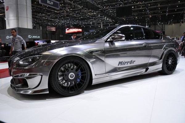 Az első, csodás darab a Mirr6r névre hallgató néhai BMW M6. A Tük6r önmagáért beszél, hiszen rögtön megértjük a frappáns névválasztás okát, ahogy belenézünk a – minden bizonnyal – méregdrága, krómszemcsét gazdagon tartalmazó, rommápolírozott autó oldalába. Nem, ez nem matrica, ez az újfajta vízbázisú festék, amire nagyon büszkék. Használják is gazdagon. Megtoldva a nagy felnikkel- és kipufogórendszerrel, valamint a bodykittel, máris kész a Hamann Tük6r.