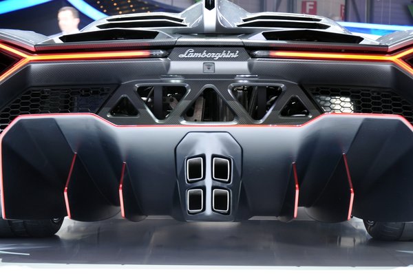 A bibi az egészben az, hogy ez tulajdonképpen egy versenyautó. És egy ilyen menetteljesítményekre képes versenyautó ritkán elegáns vagy szép. Leginkább azért, mert iszonyatos aerodinamikai leszorítóerőre van szüksége és mindent a sebességnek rendel alá. Így a Veneno sem lett egy klasszikus szépség: csupa ív, szárny és diffúzor, állítható hátsó szárnnyal, versenyfékekkel és nyomórudas felfüggesztéssel.
