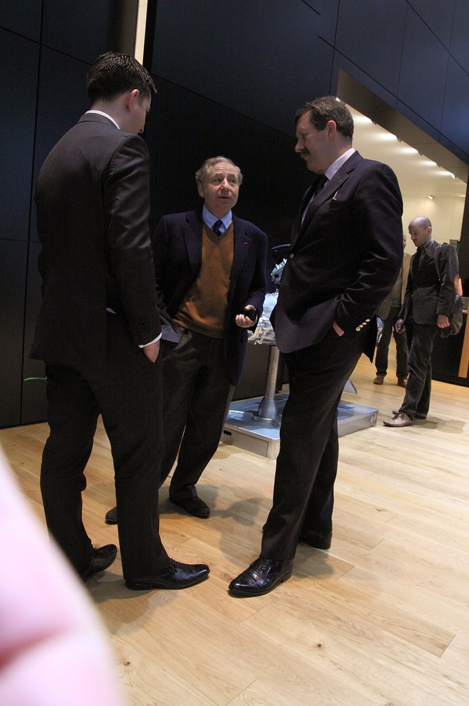 A standon furcsa volt, hogy az egyik Flying Spurt elkerítették, senki sem mehetett oda, holott előző nap ez is tapizható volt – egyébként a fényképezést nagyban nehezítette is a takarító személyzet, mert állandóan jöttek és eltüntették az ujjnyomokat mindenhonnan. Vagyis amint befejezték a kocsi hátulját, már kezdhették is újra az elejét a strucctoll seprűikkel. Mint kiderült, az elkerített szekcióban később egy kínai csoportnak tartottak külön előadást az újdonságról, kedves kínai tolmácslánnyal és német profizmussal. Ahogy nézelődök, még egy furcsaságot fedezek fel: pont a kiállított W12-es motor mellett Jean Todt beszélget a helyi fejesekkel. Az tudtam, hogy alacsony, de hogy ennyire, az meglepett.