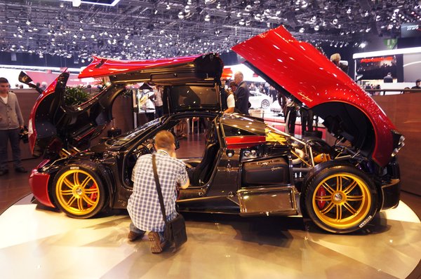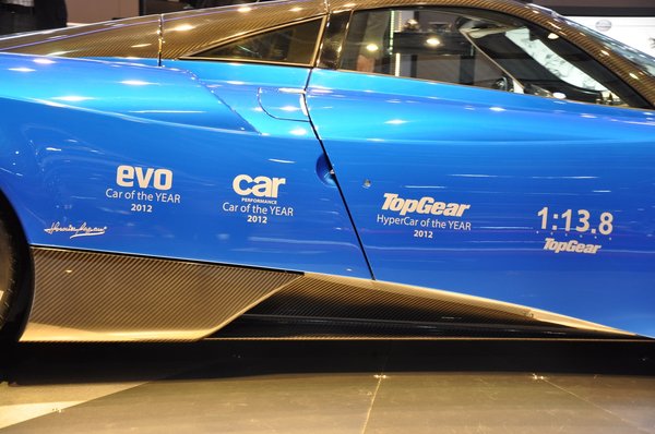 És persze a Pagani Huayra. Amit élő ember nem tud kiejteni, kivéve tán Horaciót, akivel nem sikerült találkozni, ráadásul az autóját is csak egy emelvényről nézhettük meg. Eszméletlen dolgai vannak: a nyitott váltómechanizmus 86 darab – forgácsolt alumínium és acél – alkatrészből áll, az oldalbozokba beszabott kofferek önmagukban egy Volkswagen Passatot érnek és az AMG-motor úgy pompázik a gigantikus géptető alatt, mint egy aranyba-ezüstbe mártott Zeusz-szobor.