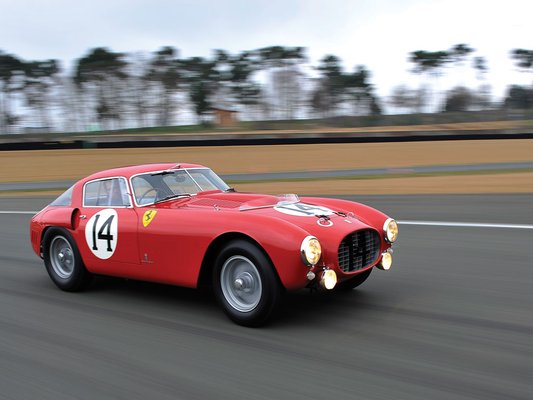 A vén versenygép a maga korában elképzelhetetlenül gyorsnak számított. A csővázas, dobfékes, merev hátsó tengelyes sportkocsi könnyű, áramvonalas karosszériát kapott, a motorházba pedig 4,5 literes, 340 lóerős V12-es motort építettek, annak a Lampredi-féle blokknak egy újabb változatát, amelyet két évvel korábban még a Ferrari F1-es versenyautójában használtak. A jellegzetes karosszéria a Pininfarina műhely munkája. Összesen három ilyen autó készült, amelyeket az évad összes fontos sportikocsi-versenyén rajthoz állítottak. Ez a konkrét példány, amelyet Mike Hawthorn és Nino Farina vezetett Le Mans-ban, a versenyen a második helyen futott, de csupán 12 körig, amikor a gépet kizárták a versenyből szabálytalan fékfolyadék-utántöltés miatt.