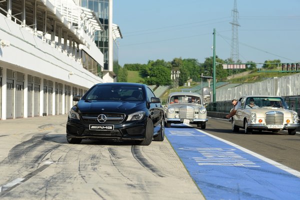 A Pályanap egyik legemlékezetesebb pillanata az marad, amikor Csikós és Pontonja lógó rendszámtáblával elgurultak a bokszutca aszfaltján terpeszkedő CLA AMG mellett. Bár a két autót fél évszázad választja el egymástól, több közös van bennük annál, minthogy márkatársak: az egyik hosszú évek után nemrég kezdett új életet, míg a másiké épp most indul.