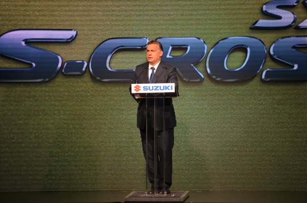 A népes japán meghívott takarásából előbújt miniszterelnök beszédében a japánok iparhoz való hozzáállását dicsérte. „Magyarország és a Suzuki útja egyfelé vezet” – mondta, s kiemelte, hogy minden itt gyártott Suzuki mögött magyar munkahelyek állnak, ezért is oly lényeges, hogy tavaly stratégiai megállapodást kötött a kormány a vállalattal. Az ország számára tagadhatatlanul fontos a gyár ittléte, ezért a korábbi ígéretek is újra elhangoztak, melyek szerint 2017 végéig állni fog az új komáromi Duna-híd, ami a vállalat teherszállító járművei számára lesz hasznos, és vele egy évben elkészül az Esztergomot az M1-es autópályával összekötő út.