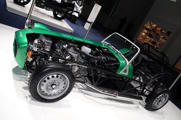 A Caterham ugyanis egy ideje már szellőzteti, hogy bevezet egy olcsó, könnyű alap-Sevent, keskeny lemezfelniken, virsligumikon, a Suzukitól származó kei-autó (660 köbcentinél kisebb motorú, kedvezményes autókategória Japánban) motorral. Ez a zöld kocsi pedig nagyon úgy néz ki, mint amiről pusmognak az angolok már egy ideje. Sőt, a motor kvázi ugyanaz.