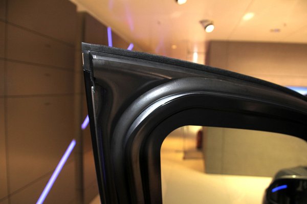 De amikor kinyitjuk az ajtót, már nyöghetünk egy jó nagyot, mert keményen, izomból kell húzni. Ha nem lenne benne okos csillapítás, ferdén parkolva simán levágná a lábunkat, és még mindig ugyanolyan tompán puffanna . Az ajtókereten már árulkodik a sok edzett acél lemezelés, de még mindig nem sejteni, hogy három centi vastag az ablaküveg. Ördögi jól rejtették el, csak akkor hiszem el, amikor leengedik a kedvemért.