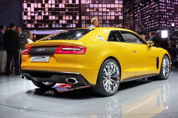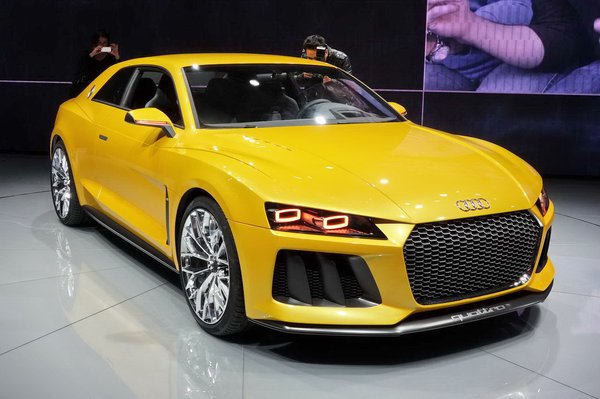 Szóban forgó jármű az Audi Sport Quattro Concept, mint a neve is mutatja, nem szériajármű, de elvileg működőképes. Az eredeti rövid Quattro raliautó szellemét idézik vele, amit épp harminc évvel ezelőtt mutatott be az Audi, itt Frankfurt am Mainban. Nevezett idézési célnak felelnek meg a merész domborítások a kerekek körül, a szögletes ikerfényszórók, a lapított C oszlop, az oldalablakok szögletes vonala, a magas, kocka-orr, a szögletes orr- és lecsapott farrész miatt kissé torzan tömör, de még így is kupészerű arányok.