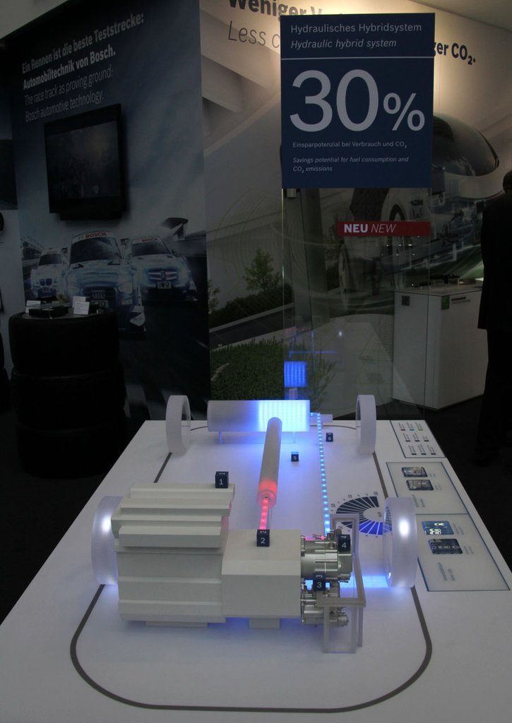 Tizenhat mozgó alkatrészből áll a hidromotor, ami egy buszt is simán elvisz, csapunk bele egyből a közepébe. Szép lassan kiderül, a Mitsubishinél már évek óta kész van az hidraulikus hibrid rendszer, amit a Peugeot nagy truvájként ad el levegős hibridnek, mivel az energiatároláshoz összesűrítik a levegőt. Csináltak egy kísérleti autót egy 5-ös BMW-ből, amivel végigmértek mindent, amit kellett: városban akár fele annyi benzinnel elmegy ugyanaz az autó a hidraulikus rásegítéssel.
