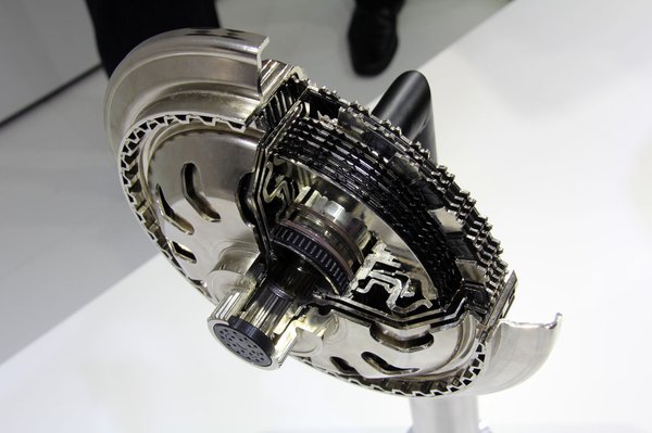 Szóval az ő lelkükön szárad az a taknyos, nyúlós duplakuplungos Volvo-váltó, gondolom magamban, de nem engedem ki a szitkozódást, nem szeretném, hogy hirtelen vége szakadjon beszélgetésünknek. Most jönnek ugyanis a Getrag újdonságai. Egy hétsebességes duplakuplungos, két változatban, a púpos egy beépített villanymotorral. A hibridesítéshez szánt holmi a páros fokozatokban képes tisztán elektromos meghajtásra, de mindkét kuplung zárásával bármilyen helyzetben rá tud segíteni. Faggatásomra olyan utalást kapok válaszul, amiből arra következtetek, ez is egy Volvóban fog hamarosan megjelenni.