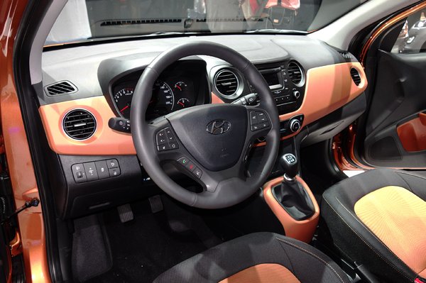 A szalonos beülőteszt sokat elmond egy kocsiról, s ezeknek a mondanivalóknak az i10 esetében jó az üzenete. Kiemelném a legfontosabbat – egész kényelmesen elférek önmagam mögött, ami közel sem egyértelmű egy ilyen 3,64 méter hosszú kiskocsinál. Elöl sem szűk, ráadásul - a fejlesztők sejthető pénzügyi megkötéseihez képest – egészen elfogadható a kidolgozás. Egyszerű, tiszta formák, az ajtón négy gomb a villanyablakoknak, automatikus légkondi, ülésfűtés, sportos dudorokkal gazdagon meghintett multifunkci-kormány, nagyobbacska kijelző középen (navi nem lesz, felárért sem), jópofa narancssárga betétek. Kérdés, hogy az Átlagjános által megrendelt full-szürkében milyen lesz – félek, hogy lehangoló.
