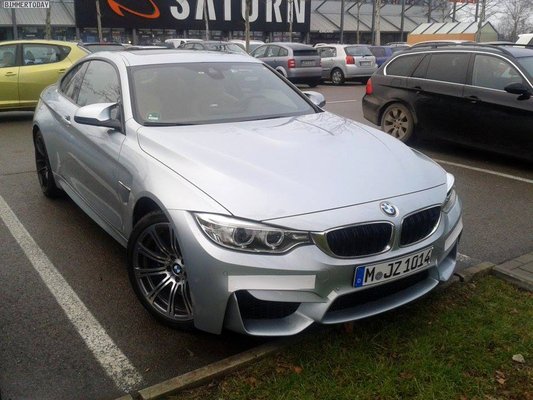 Vajon szándékosan hagyták a teli németországi parkolóban néhány percre az F82-t, hogy bárki lefotózhassa vagy muszáj volt a sofőrnek megállnia? Bármelyik előfordulhat. A képen látható M4 nagy valószínűséggel Silverstone Metallic szürke színű. A korábban kifejezetten az M3-asok számára kevert sárga, majd fehér színek után most könnyen ez lehet a slágerszín.