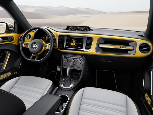 Ezt a kultuszt igyekeztek meglovagolni a VW tervezői a Beetle Dune tanulmánnyal. E törekvésük azonban a kerekek méretében, a megemelt hasmagassában, a fémszínű kartervédő-imitációkban és a tanulmány hírtelensárga színében ki is merül - minden egyéb szempontból a tanulmány alapjául szolgáló Beetle Turbo jellegzetességei uralkodnak a formán. Érdekes részlet a ködlámpákat pótló két tejüveg karika, aminek a tetejét némi fekete műanyaggal rejtették el. A cél a morcosítás lehetett, de inkább komikusan néz ki így, vastag szemöldökkel, mintsem agresszíven.