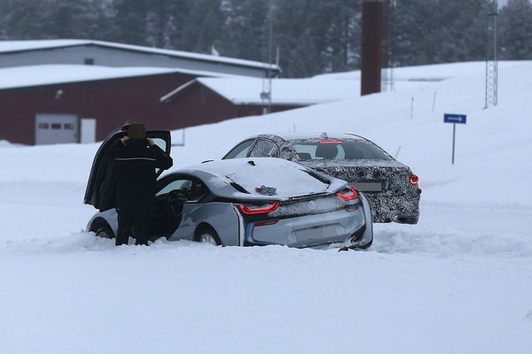Január közepén, a német A92-es autópályán egy tesztpilóta már le is zúzta az egyik prototípust, most pedig egy másik példány került a hó fogságába. Úgy tűnt, a segítség hamar megérkezett, azonban a helyszínre siető 7-es BMW-vel nem tudták kihúzni az i8-at: farrészéről hiányzott a vonószem. Végül meg kellett várniuk a hómunkásokat, akik kiszabadították szorult helyzetéből a hibrid sportkocsit.