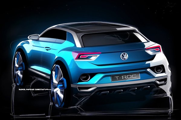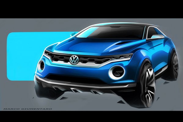 A vázlatok alapján végre valami kevésbé sematikussal próbálkozik a Volkswagen. A T-Roc tanulmány a kis hobbiterepjárók legújabb divathullámának közepébe céloz, ahol most a Nissan Juke, a Peugeot 2008-as és a Renault Captur nyüzsög.
