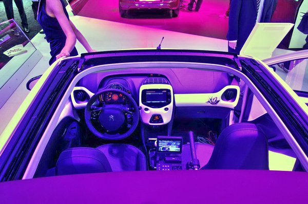 Érdekes, a Citroen összesen egy kinyitható, beülhető autót hozott el a szalonra, még érdekesebb, hogy alig lézengtek körülötte az emberek. Kicsit bámultam azt az erősen kihúzott szemöldökű pofáját, majd amikor szabaddá vált, gyorsan magamra vettem az autókát. Hm, egész jól be tudtam állítani az ülést, bár a fejem kicsit közel került a tolótető kivágásának a szegélyéhez. Jól néz ki, nyoma sincs drága anyagoknak, de a Citroen ugyanúgy dobta fel a belső tér hangulatát mindenféle színes műanyag betétekkel, ami már a Cliónak is olyan jól állt tavaly a Renault-éknál.