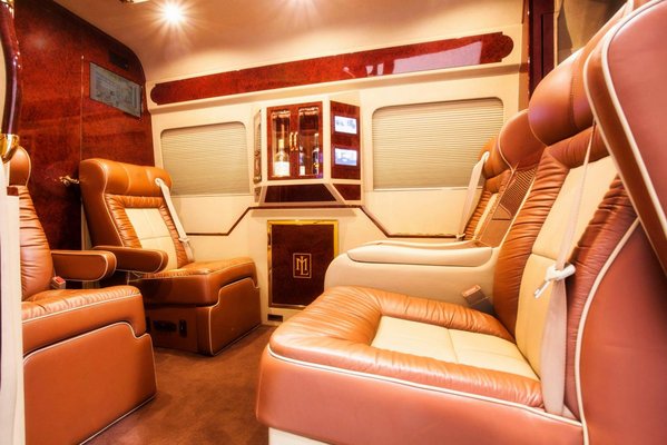 Ez már a szint, ahol az összes aranyszínű részlet valóban arannyal futtatott fémből készül, a padló valóban faburkolatú, és a bőr is a legjobb minőségű, ám ennek már az árát is megkérik. Alsó hangon is 250 ezer dollárt kérnek egy ilyen átépítésért, a csúcsváltozat viszont akár félmillióba is belekerülhet, ami átszámítva úgy 110 millió forint. Ennyiért már bármilyen luxusautót meg lehetne venni, de egy ilyen átépített Sprinter sokkal több helyet és sokkal kisebb feltűnést jelent – aki sokat utazik, annak alighanem sokkal jobb egy ilyen, mint bármilyen csúcs-limuzin.