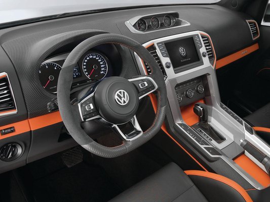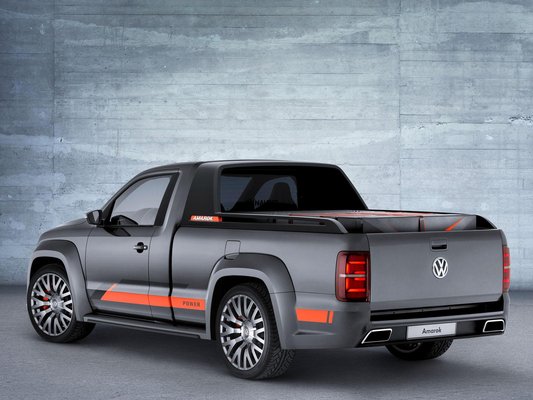 A Power Concept alapja a rövid kabinos Amarok pick-up, amelyet meglehetősen látványos tuningnak vetettek alá. Alapos ültetést kapott, szélesített küszöböket, és hatalmas átmérőjű felniket alacsony profilú gunikkal. A haszonjármű egyszerű sziluettjén a kabin mögötti műanyag idommal igyekeztek segíteni – így legalább látszólag nem egy függőleges vonal zárja le az utasteret – a grafitszürke fényezést pedig narancssárga csíkozás hivatgott mozgalmasabbá tenni.