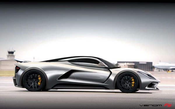 A Venom F5 már csak halványan emlékeztet Lotusra, legalábbis az előzetes vázlatok alapján. Az arányok – és nagyrészt nyilván a műszaki megoldások is – változatlanok, de ezt az autót könnyebb lesz sajátként eladni. Ráadásul ezt szánják a világ leggyorsabb sportkocsijának. A Venom GT ugyan február óta nem hivatalosan birtokolja ezt a címet, hisz túllépték vele a 435 km/h-t, de az F5-tel ezt is jócskán túl szeretnék licitálni. Az autó formája nagyrészt a virtuális szélcsatorna-teszteknek köszönhetően lett ilyen: a GT légellenállási tényezője még 0,44 volt, az új sportkocsié azonban 0,4 alatt lesz, viszont a tervezők azt remélik, sikerülhet átörökíteni a GT kivételes nagy sebességű stabilitását.