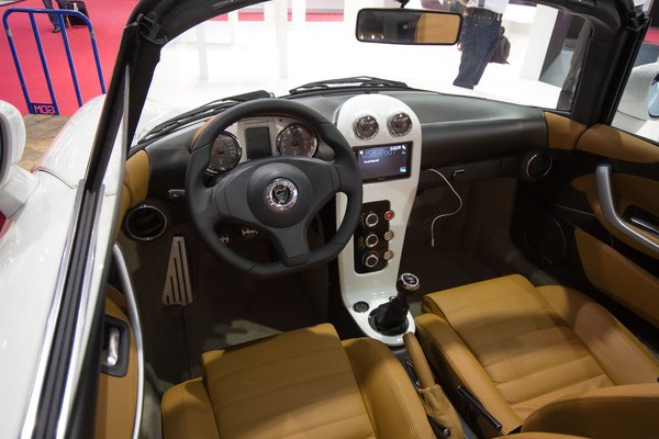 Tudom, az ember hajlamos megszánni, mert kicsi, és azt hinni, hogy legalább az utastere valami csoda a 12 milláért, de mindenkit megnyugtatok: mintha egy kupleráj bútoraival rendeztek volna be egy mopedautót. Tényleg rettenetes az egész, bár a standon egy veterán Porsche tulajával jártam, aki szerint aranyos. Lehet, hogy nála jó gombot nyomott meg a kis nyomoronc, nálam viszont nem. Elnézést, ha mégis ez lenne a világ legjobb autója.
