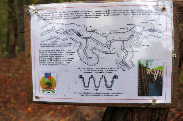 Ennek az erődrendszernek a maradványait tárta fel és tette látogathatóvá a Hadtörténeti Múzeummal közösen a Páka Értékeiért Egyesület, ami követendő példa idehaza, legalábbis ebben a formában bizonyosan. Egyrészt a tanösvény informatív, a táblák, ábrák és metszetek jól elhelyezettek, nem is értem, miért volt az jó és kinek, hogy helyenként letépte őket a helyükről. Két-három pados, asztalos pihenőhely is akad az ösvény mentén és persze vécék is, bár ezekre ráférne némi takarítás, hogy az idelátogatók ne Alberto Tomba-pózba dermedve álljanak rajthoz a művelet előtt.