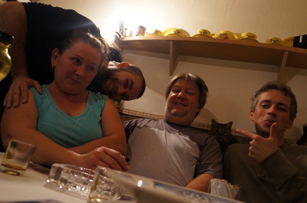 IIyesféle információk próbáltak utat törni az agyam felé miközben a birodalom közepén állva hallgattuk a mestert. Ha minden adatot és összefüggést átfuttattam volna, ma talán én is konyítanék a viszi autós népművészethez, de esélyük sem volt, mert nem sokkal korábban még a konyhában ültünk, ahol rettenetes adagokat mérnek az ember elé. Békében él itt egymással Micike a család macskája, akinek örökbérlete van az ebédlőpad támláján és az egyik fotónkon bizonyítja, ösztönből megy neki a photo bombing. Onnan tökéletes panoráma nyílik Margó kiadós gulyáslevesére is, a tányér mélysége végtelen, és nem mellesleg Zeusz is látható, aki nem fogyaszt macskákat, de jobb a béke, elvégre egy bernáthegyinél egy pillanatnyi ízlésbeli megingás is végzetes lehet.