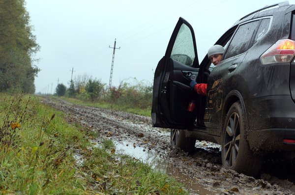 A modern common rail dízelmotorok sajátos karakterisztikája miatt ezerötszáz fordulat alatt megszűnik a tolás, hamar lefulladunk. Ilyenkor az eltömődött gumikon azonnal csúszik is oldalra a kocsi. Az ember nem is érti, honnan szerzi hozzá a mozgási energiát. A kuplung sem szereti a határterhelést, ezért a szoros helyzetekben, amikor hintáztatni kellett a Nissant, hogy kimásszon egy út menti árokból, menetrendszerűen jött a szag, kellett volna a felezőváltó, de olyanunk sem volt. Stratégiát váltottunk, lendületből mentünk ahol lehetett, aztán néha rápróbáltunk az amúgy elég hosszúra áttételezett kettesre, így nem romlott tovább a kuplung állapota.