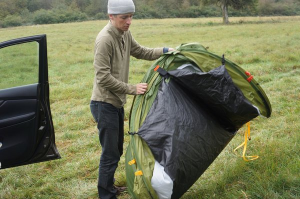 A sátor, a két másodperc alatt szétrobbanó Quechua-gyártmány egy igazi időspóroló csoda. Egyrészt tényleg pár másodperc alatt magától szétpattan és használatra kész, ráadásul bőven méri a két személynyi helyet, hiszen kisebb termetűekből akár hárman is simán elférnek benne. Duplafalú és meglehetősen beázásbiztos, hiszen az azon a héten tomboló komoly esővíz sem áztatta be, bár igaz, hogy körültekintően választottunk táborhelyet, lehetőleg enyhe lejtőn, hogy ne egy pocsolya közepén ébredjen az ember. Cserkészkoromban még tanultuk a sátor köré árokásást és a gyeptégla visszahelyezést, de azóta sem találkoztam senkivel, aki vízelvezetőt ásott volna a sátra köré. Mondjuk azóta a sátrak is jobban bírják a vizet, ez tény.
