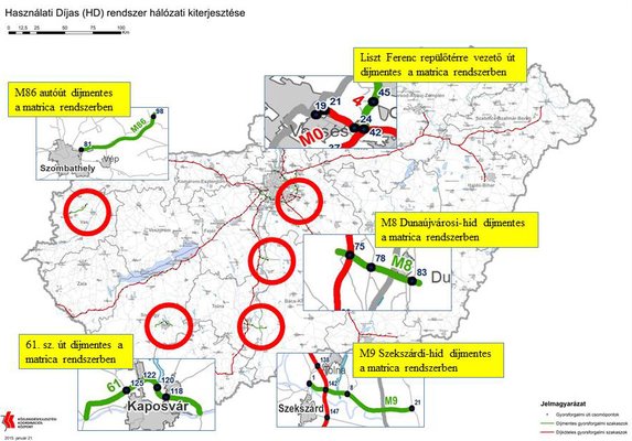 Ideiglenesen marad ingyenes Kaposvárnál a 61-es út, Szombathelynél pedig az M86-os. Ezek ugyanis jelenleg nem kapcsolódnak autópályához, amint azonban becsatlakoznak majd a gyorsforgalmi úthálózatba, újra matricavásárlásra kötelezik a közlekedőket.