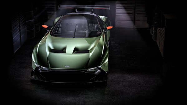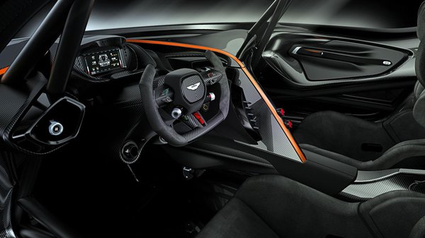A jellegzetes Aston Martin arányok persze megmaradtak itt is, a hosszú orr és a viszonylag hátra helyezett kabin a Vulcanra is jellemző, ahogy az övvonal hullámai is megmaradtak. Viszont a karosszérián jóval több az él, mint eddig, az autó orra pedig egész érdekes módon tartotta meg a karakteres hűtőrács-formát, amely a kezdetektől ott van a cég összes sportkocsiján. Hatalmas, karbon-peremű harcsaszáj lett belőle, amelymel a felső sarkaiban apró fényszórókat helyeztek el.