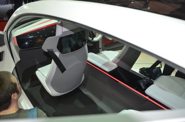 A Qoros trükkösen dizájntalulmánynak álcázva vonzza a QorosQloud 2.0-hoz az embert. Az ívben vágott ajtók mögött aztán a 3-asok egyen utastere, látszólag semmi új sincs benne. A vágott forma csak afféle szimbóluma a megújulásnak, a felhő alapú infotaiment-rendszert demózzák így, ami okostelefonon keresztül köt az autóhoz. A rendszer egybe épít mindent a közösségi oldalaktól a navigációig, távolról figyelhető vele az autó állapota. Hasonlót sokan csináltak már, a bemuató videók szernit pedig ez egyelőre a kínai szolgaláltásokkal, Kínában működik maximálisan.