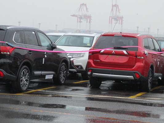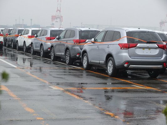 Itt látszik, hogy sok típust már a bemutatása előtt nagy tömegben gyártanak: valaki egy egész hajórakomány ilyen átrajzolt orrú Outlandert fotózott egy kikötői rakodóterületen. Igazából ezzel a frissített modellel a Mitsubishi a 2012-ben bemutatott Outlandert ért kritikák egy részére válaszolhat, hisz azt a modellt unalmas külsejéért és az elődeihez képest is visszalépésként értékelhető belső téri anyagaiért és kidolgozásáért kritizálták a legtöbbet.