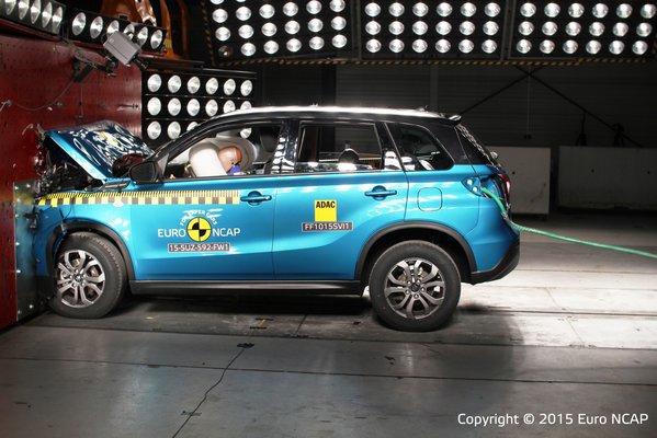 Az élen a Suzuki Vitara végzett, a nyilvánosságra hozott adatok szerint teljes joggal. A felnőttek passzív biztonságára 89, a gyerekekére 85, a gyalogosvédelemre 76, az aktív biztonságra 75%-ot kapott a magyar modell. Az alapfelszerelés része az automata vészfék, amiért plusz pontok jártak – jegyezzük meg, ez még lényeges lesz.