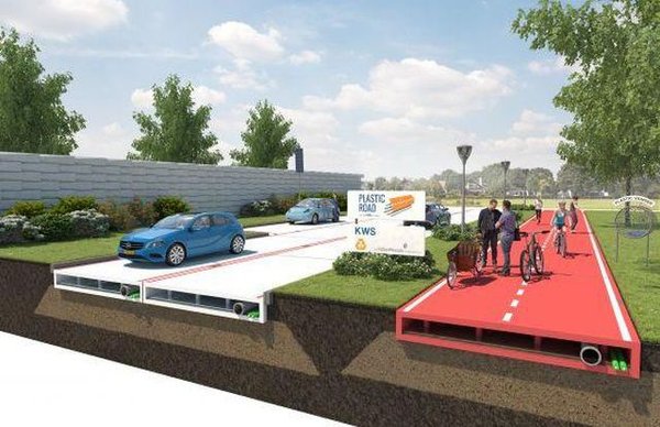 A VolkerWessels és a KWS Infra nevű vállalatok fejlesztése alapjaiban változtathatja meg az útépítés módszereit. A jelenlegi aszfalt-burkolatot és az alapozás egy részét is kiválthatja az újrahasznosított műanyag szendvics-szerkezet. A fejlesztők szerint az új útburkolat tartósabb, mint a manapság alkalmazott megoldások: az élettartama a becslések szerint háromszorosa az aszfaltburkolaténak, és -40-től 80 fokig megőrzi szilárdsági tulajdonságait. A színezhető anyagú út ráadásul kétrétegű, és magában foglalhatja az összes közmű-csövet és kábelezést, és úgy alakították ki, hogy ezek az útburkolat feltörése nélkül cserélhetők, illetve karbantarthatók legyenek.