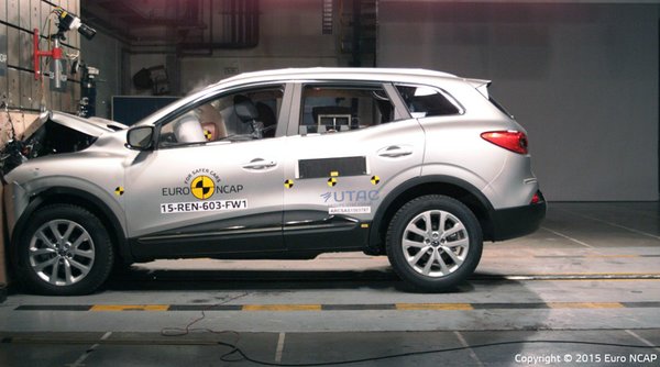 Az ötcsillagos szekciót képviseli a Renault Kadjar is, szép pontokkal ((felnőtt: 89%, gyermek: 81%, gyalogos: 74%, bizt. rendsz: 71%), az utas mellkasánál közepes a sérülési kockázat, amikor teljes átfedéses frontális ütközés történik, de minden más ponton legalább jók vagy kiválók a Renault értékei. Érdekes módon az első fejtámaszok védelme csak átlagos, a hátsó üléseken kisebb a nyaksérülés esélye, ha hátulról szalad egy másik jármű a Kadjarba.