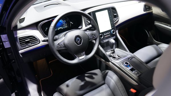 A márkán belüli karakterazonosság az utastérben is egyértelmű. A műszerfal a Mégane-ban, és a szintén itt bemutatott Talismanban is ugyanaz: középen egy kerek kijelzőn a sebesség, sebességi fokozat és a fordulatszámmérő, kétoldalt pedig furcsa módon analóg vízhőfok- és üzemanyagszint-jelzők. És persze a 8,7 colos függőleges tablet a középkonzolon, Tesla stílusban.